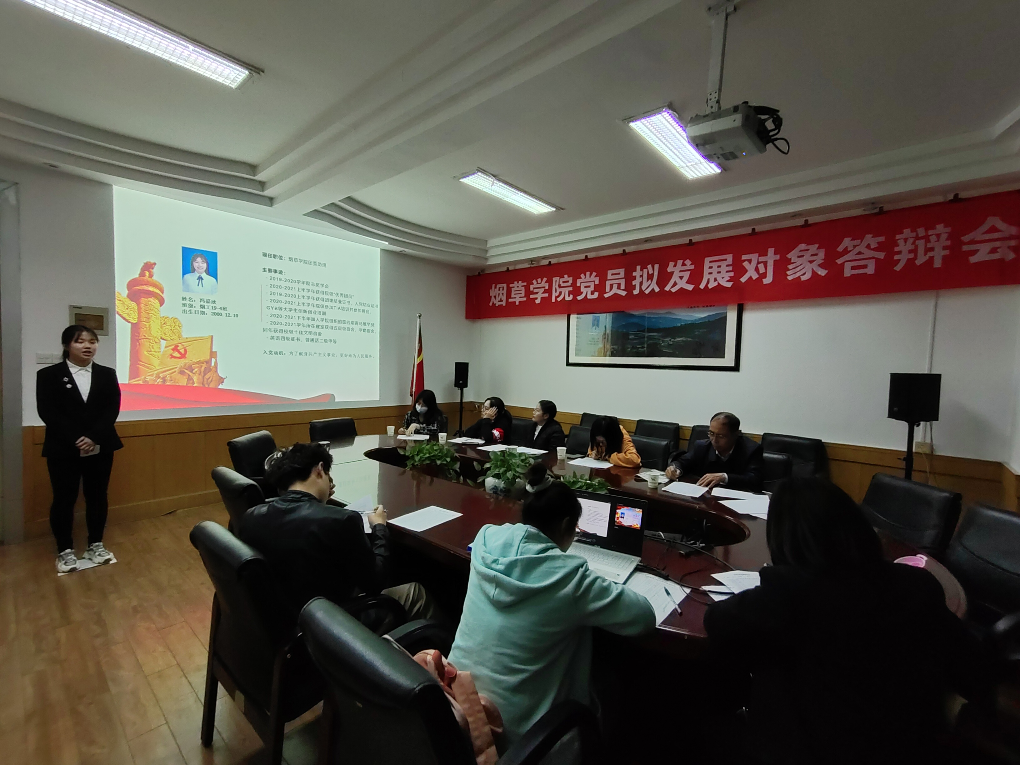 本着公平、公正、公开的原则,通过班级推荐、笔试考核及资格审查等环节共推选出63名推荐发展对象参加本次答辩会。每位答辩同学都先从党课学习、思想转变、入党动机、自我实现目标等方面进行自我介绍,再严肃认真地回答有关党政知识、时事热点等理论知识题和评委随机提问的问题,充分展现出良好的政治理论知识积累,并表达出自身强烈的入党意愿。由于两位发展对象不能及时到场,本次答辩会更是通过腾讯会议采取了发展对象网上答辩的方式,让评委能够更加全面地了解发展对象的入党动机、学习情况、所获荣誉,充分展现了现代科技的便利性。