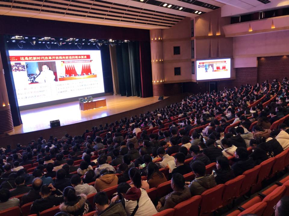 党的十九届四中全会是我国发展建设关键时期召开的一次关键会议,具有重大而深远的意义。学习宣传贯彻好党的十九届四中全会精神将成为我们当前和今后一个时期的重要政治任务,此次宣讲会的开展,进一步在全校上下营造了学习宣传贯彻党的十九届四中全会精神的浓厚氛围,帮助广大党员干部师生深刻认识学习党的十九届四中全会精神的重要意义,深入学习、宣传、阐释、贯彻、落实好全会精神,坚持和完善中国特色社会主义现代大学制度,才能不断推进学校治理水平和治理能力现代化。