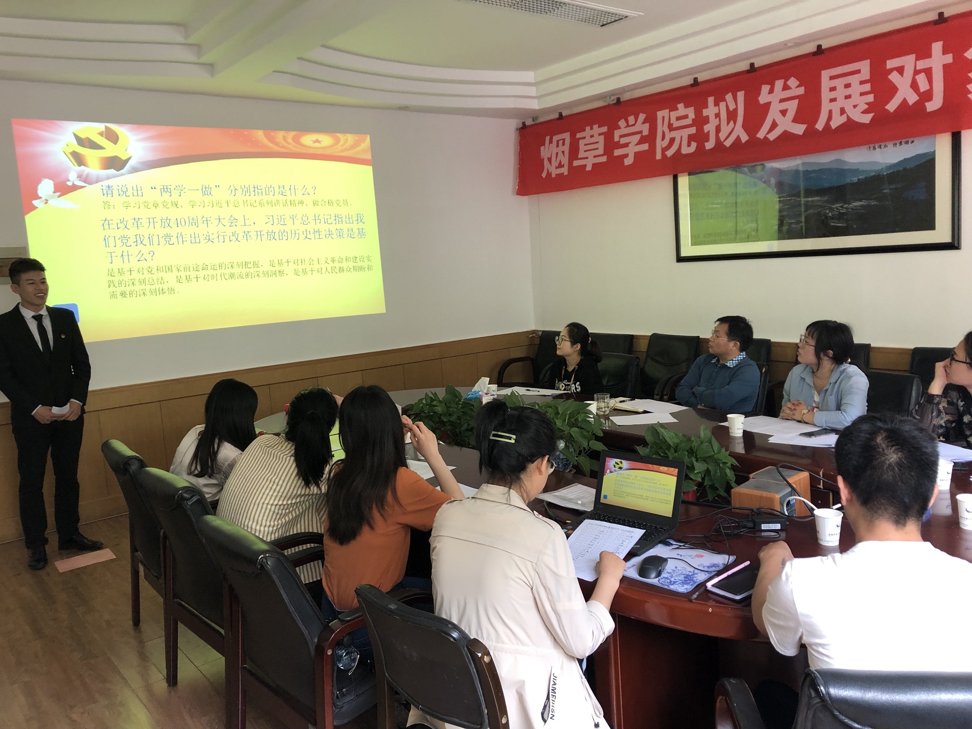 为严把党员发展质量“入口关”,综合考察党员拟发展对象的政治素养和党性修养,h图书馆 于5月14日在文化路校区17号楼208会议室举办h图书馆 党员拟发展对象答辩会。院党委书记李平、院党委副书记秦素玲、院团委书记徐涤寒、团委副书记郑丽娜、党委组织员王雪婧和各学生党支部书记参加此次答辩会并担任评委。