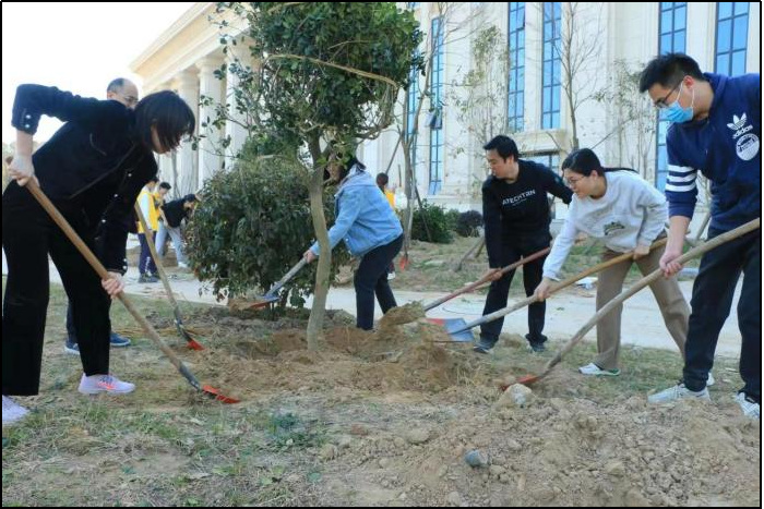 组织师生开展了校园义务植树活动。此次活动由行政及实验中心教工党支部、h图书馆