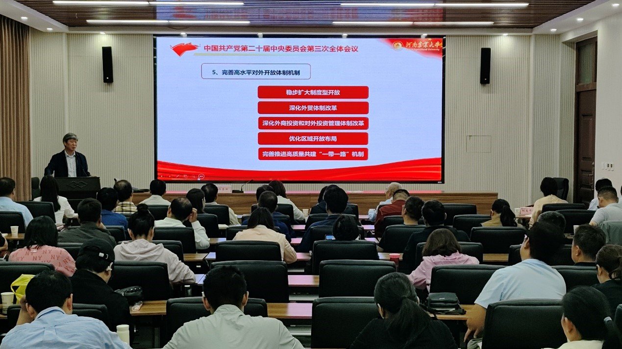 9月30日上午,副校长杨喜田到h图书馆 宣讲党的二十届三中全会精神。h图书馆 、文法学院、理学院、许昌校区、附属中学等单位班子成员、科级干部及学生党支部书记代表参加会议。会议由h图书馆 党委书记张利冰主持。