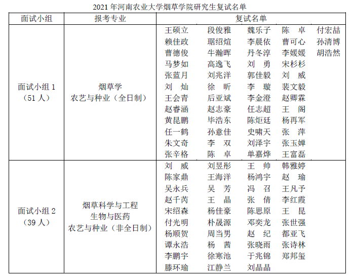 2、由于报考烟草学与烟草科学与工程专业的研究生均超出指标名额,超出指标名额调剂至农艺与种业领域专业的考生统一排名后,按照排名从高到低依次录取。