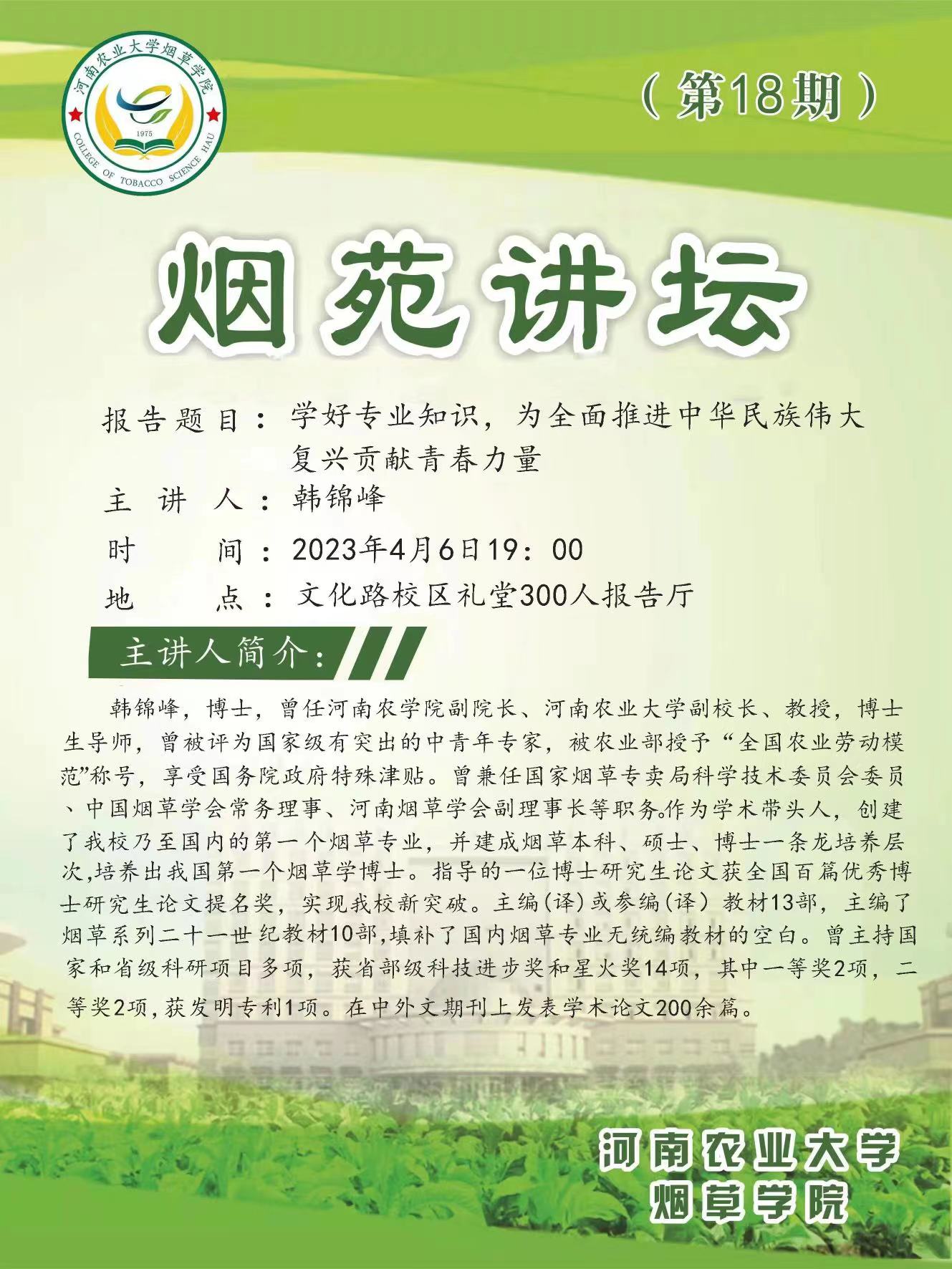 韩锦峰,博士,曾任河南农学院副院长、h图书馆