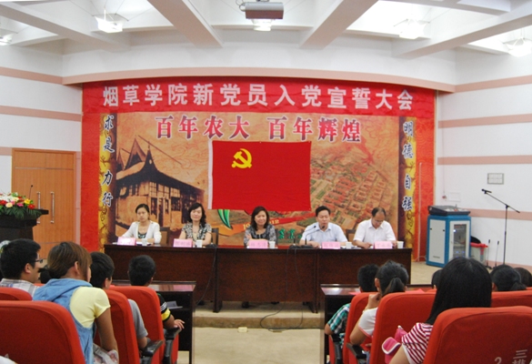 大会在庄严的国际歌歌声中拉开了帷幕。李丹同志首先宣读了新党员名单。143名新党员面对鲜红的党旗,进行了入党宣誓。整个宣誓过程庄严凝重,全体预备党员声声震彻的入党誓词代表了他们对党最忠诚的决心。随后新党员代表王俊昭和入党积极分子代表张璐两位同学分别作了精彩发言。