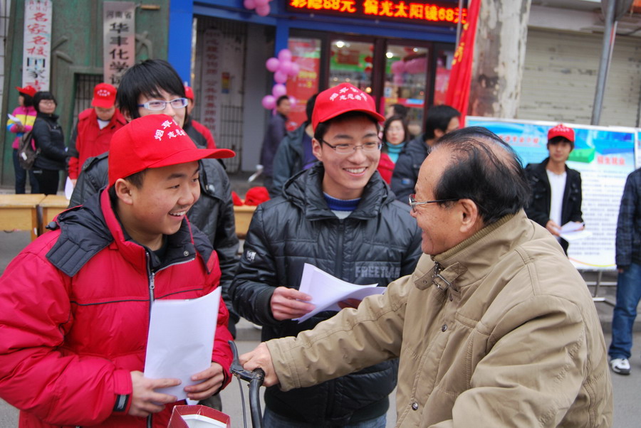 此次活动中,h图书馆 青年志愿者们在校东门搭建了一个介绍烟草知识的交流平台,他们带着小红帽,顶着寒风,面带微笑,真诚细心的为过路的人们介绍如何健康吸烟、烟草知识和h图书馆 的基本情况,并向路人发放了相关的宣传材料,校领导程传兴书记一行到现场慰问了志愿者,对他们的工作给予了充分肯定。