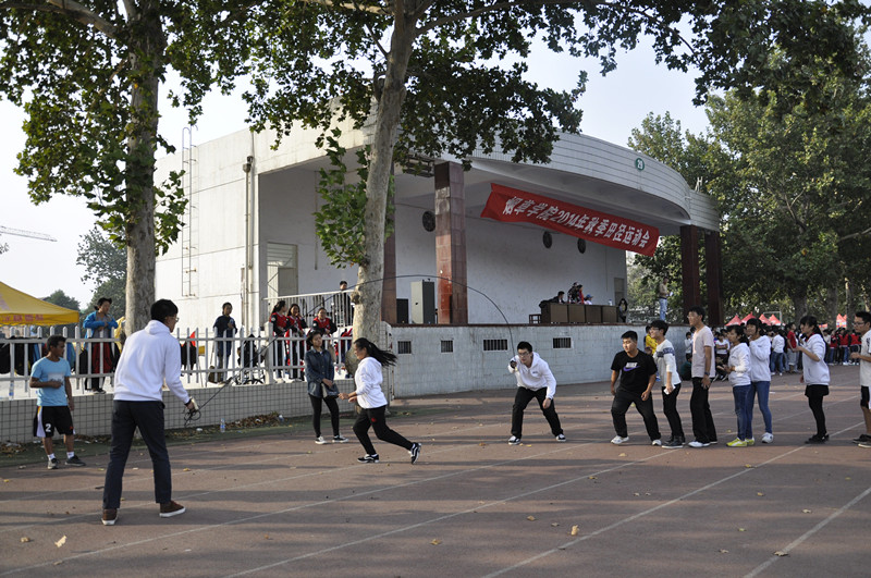 在文化路校区田径场举办了2014年秋季田径运动会。学院领导赵传兴、张利冰、许自成、丁永乐,各系主任及两办负责人出席了开幕式,同时邀请体育学院巴玉峰作为总裁判长。
