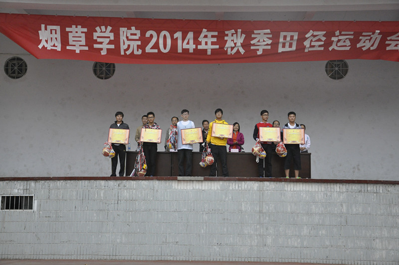 闭幕式上,总裁判长巴玉峰宣布比赛成绩。副院长丁永乐宣布获奖单位:一等奖烟草13-3班;二等奖烟草13-1班和烟工13-1;三等奖研究生代表队、现代化13级、烟工14-2班;体育道德风尚奖烟草13-2班、烟草13-3班、烟草14-2班。随后学院领导为获奖单位颁发了奖状和奖品。最后,院党委副书记张利冰致闭幕词,她对本次运动会上获奖的集体和个人表示祝贺,对体育学院师生裁判、全体志愿者和学生干部所付出的辛勤劳动表示衷心感谢,希望全体同学把在赛场上表现出来的团结互助、顽强拼搏、永不放弃的精神带到学习和工作中去,为学院各项事业的快速发展做出更大的贡献。