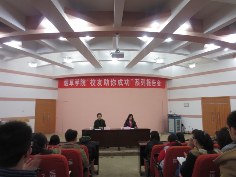 陈卫华校友结合烟草行业用人单位招聘程序,从如何制作简历、报名、笔试、面试等环节向同学们详细介绍了在应聘过程中应该注意的事项和问题,她以生动的实例分析了应聘者成功的经验和失败的教训。报告会历时两个多小时,座无虚席。报告结束后,