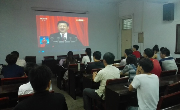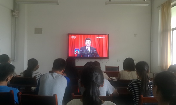 7月1日上午,h图书馆 在文化路校区和龙子湖校区分别组织师生收看“中国共产党成立95周年庆祝大会”现场直播。学院党政领导同教师代表、研究生及本科生代表一起听取学习了习近平总书记的重要讲话。