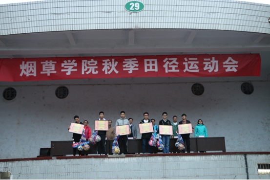闭幕式上,总裁判长巴玉峰宣布比赛成绩,副院长丁永乐宣布获奖单位:一等奖研究生代表队;二等奖烟工16-2班、烟草15-1班;三等奖现代化15-1班、烟工15-2班、烟工14-2班、烟草15-3班。道德风尚奖:研究生代表队、烟草15-3班、烟草16-4班、烟工16-1班。学院领导为获奖单位颁发奖状和奖品,院长赵铭钦宣布本届运动会圆满落幕。