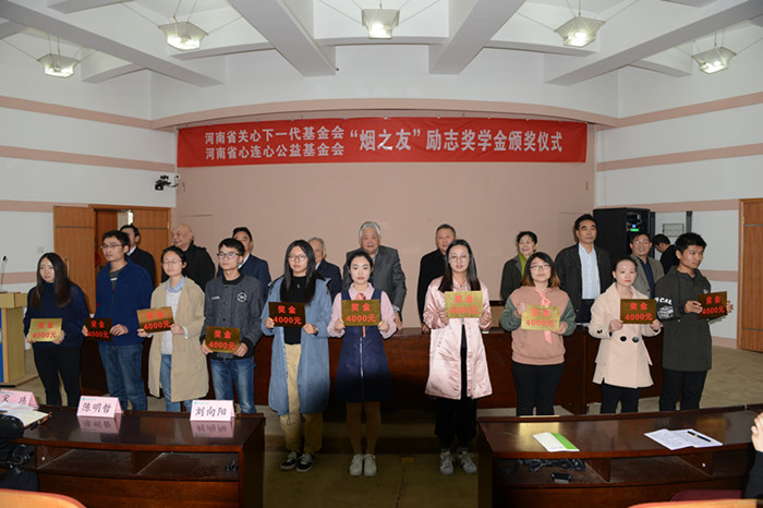 “烟之友”励志奖学金的设立,充分体现了省关工委的老领导们和河南省心连心公益基金会对h图书馆 学生的关心关爱,也表现出对h图书馆 烟草教育的认可和支持,激励青年学子不忘初心,牢记使命,励志求学、报效祖国。(文/郑丽娜 图/黄婉莹)