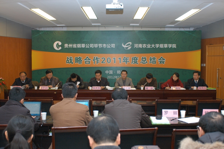 最后,贵州省烟草公司毕节市公司局长、经理陈文相做了总结讲话,他充分肯定了双方合作两年来所取得的成果,认为双方的合作呈现了步伐加快、更加深入、更加务实、效果明显的四个特点,并希望下一步合作能够在项目选题、项目研发、技术研发、技术服务、人才培养和学历教育再上水平,以优异的成绩献礼党的十八大。