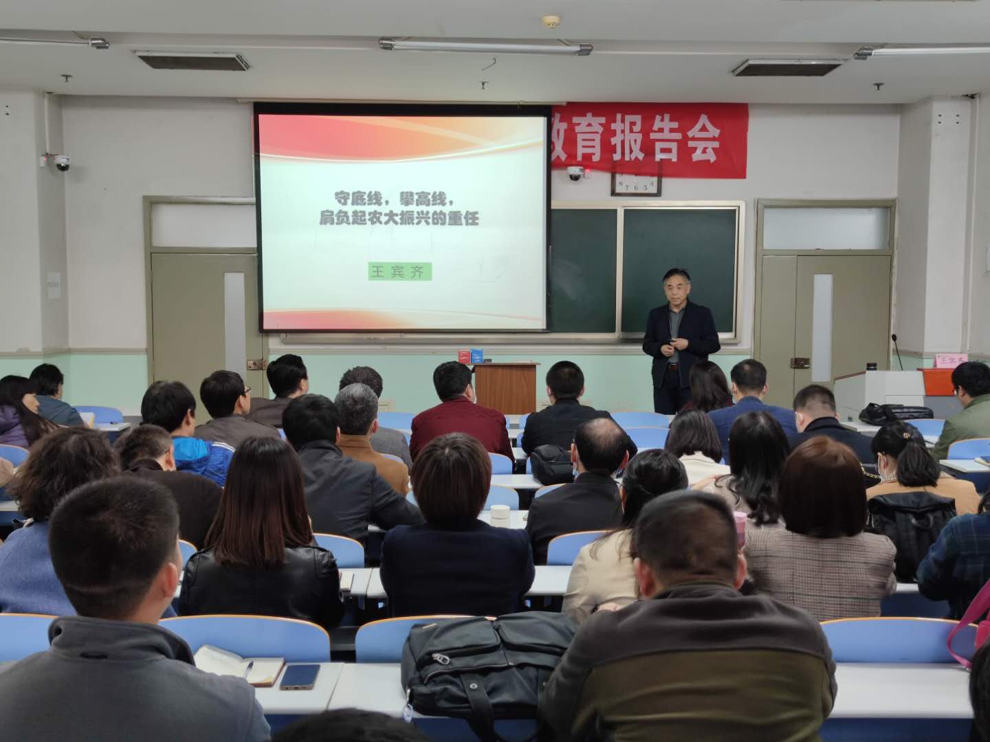 王宾齐教授以“规矩”为引,并从三方面切入报告主题。第一,为什么要遵规守矩。他认为遵规守纪、廉洁自律是党组织的刚性要求,是公民享有自由的前提和保证,是行使公权力的基本要求和“护身符”,尤其是共产党员更要讲规矩,守纪律。随后他以一些高校常见的违法乱纪现象为例进行深刻剖析,讲述了违反政治纪律、组织纪律、廉洁纪律、群众纪律、工作纪律、生活纪律等几种现象,阐明了高校腐败的含义和表现形式,分析了违规违纪现象发生的主、客观原因,以此告诫广大教职工能够以案为鉴,汲取教训,警钟长鸣,坚守初心。最后,王宾齐教授嘱托大家要肩负起农大发展的历史重任,吸取沉痛的教训,进行深刻的反思,守好底线、勇攀高线,续写h图书馆 发展的新篇章。