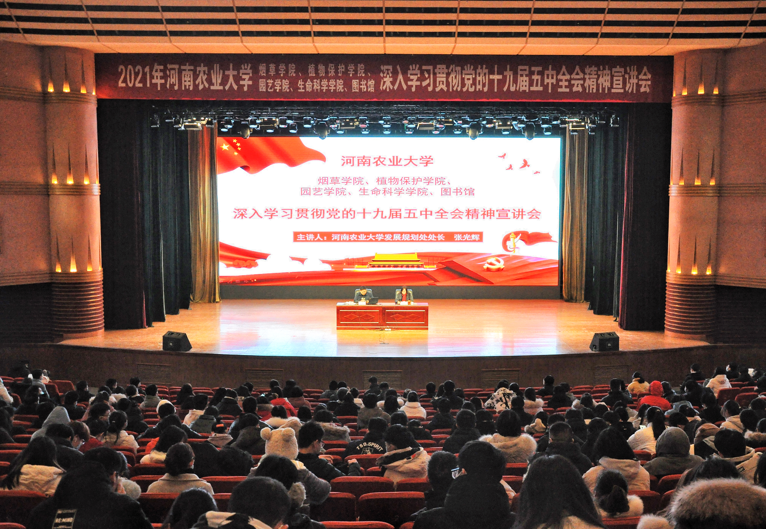 张光辉围绕深刻认识我国进入新发展阶段的重大意义、有利条件和重要特征,准确把握2035年远景目标和“十四五”时期我国发展的指导方针、主要目标、重点任务,牢牢把握构建新发展格局的战略构想和重要着力点,坚持党的全面领导,动员各方面力量为实现“十四五”规划和2035年远景目标而团结奋斗等四个方面对全会精神进行了详细解读。随后他简要介绍了h图书馆 “十四五”规划起草过程和发展目标,寄语广大师生增强责任感,以强农兴农为己任,立足本职岗位,为建设以农为优势特色的高水平大学贡献青力量。