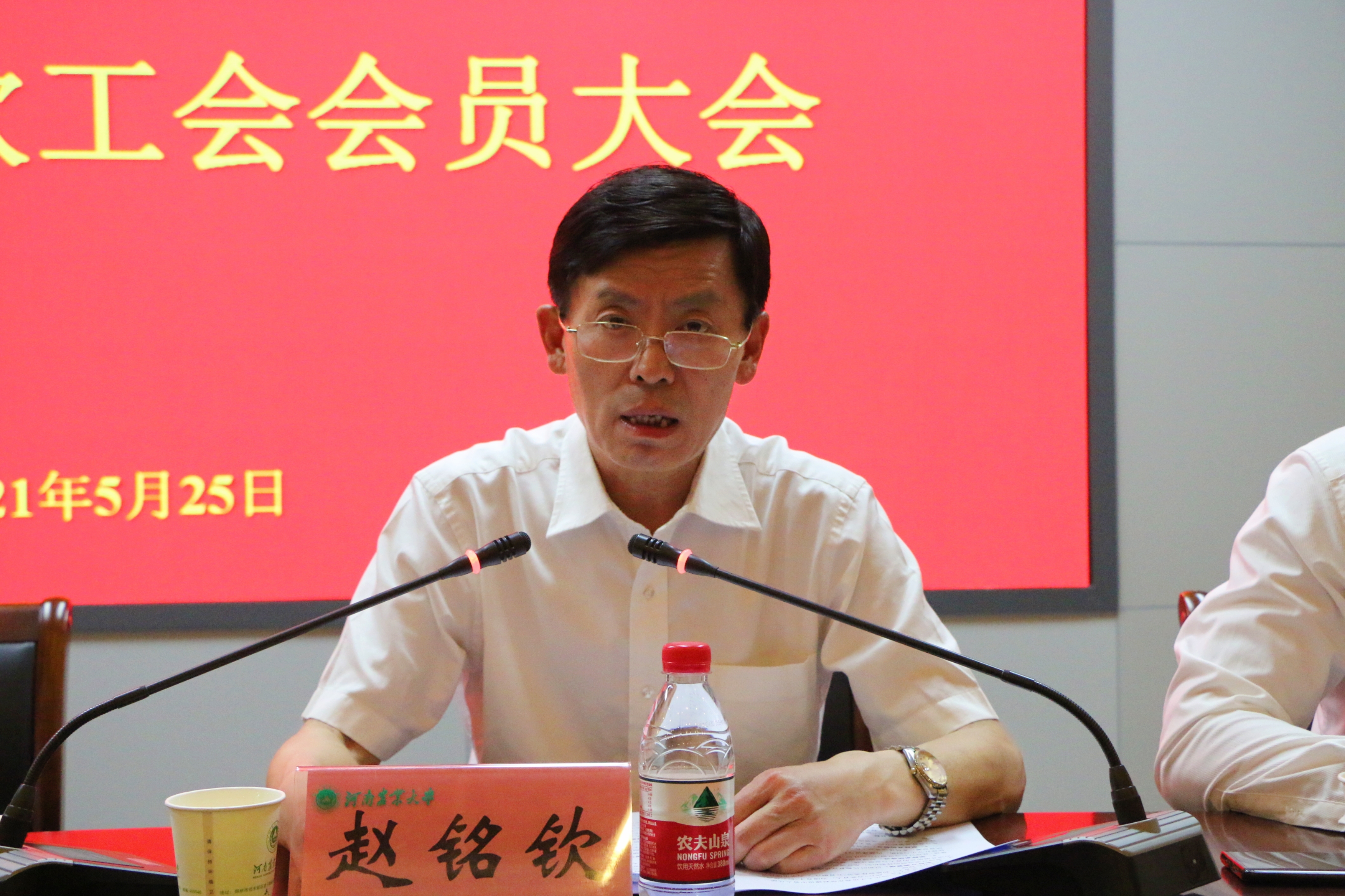 宋朝鹏宣读《关于烟草召开第四届教职工大会暨四届一次工会会员大会请示的批复》。院长赵铭钦作《奋进新征程,展现新作为——奋力谱写特色研究型学院高质量发展新篇章》报告。报告全面回顾和总结了2020年学院取得的办学成绩,提出了“十四五”期间学院发展的指导思想、基本遵循和奋斗目标,部署了2021年学院的重点工作。报告指出,“十四五”期间,学院将坚持以习近平新时代中国特色社会主义思想为指导,坚持“以人为本、崇尚学术、追求卓越”的办学理念,坚持“立足河南,面向全国,服务行业,走向世界”的办学定位,围绕全面建成特色研究型学院,补短板强弱项;以行业需求为导向,推进学科交叉融合,加强复合型人才培养;围绕行业产业链部署创新链,提升创新能力,推进产业链、知识链、创新链融合,为行业全产业链发展提供高科技人才、一站式服务、农大式方案;稳步推进国际合作,开拓国际视野;加强文化建设,凝练“h图书馆 精神”,提升学院凝聚力、战斗力;加强制度建设,完善治理体系,整合办学资源,全力打造“中国第一,世界知名”h图书馆 。