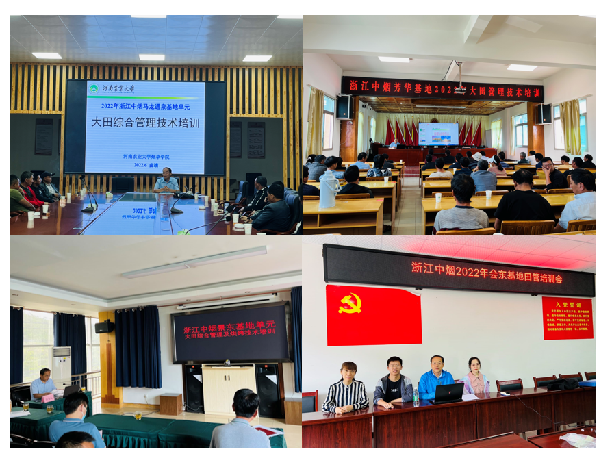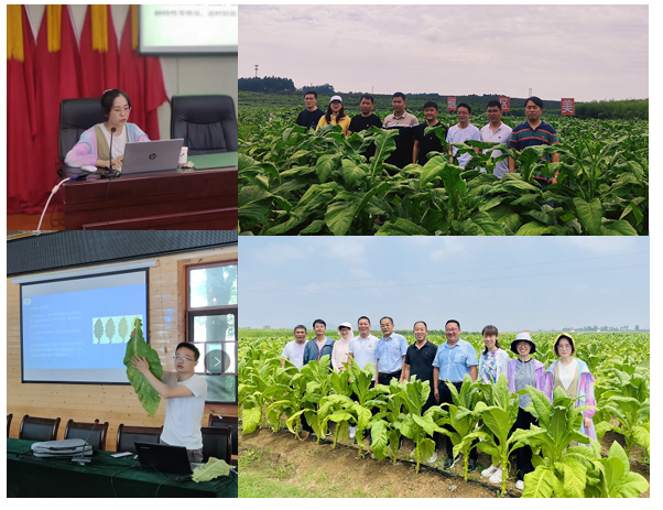 在工业公司原料部、技术中心的领导、专家和区域经理、各产区市局公司、县局分公司、基层烟站的领导、烟技员的陪同下,学院许自成教授、邵惠芳教授、黄五星副教授、张小全副教授、杨永霞副教授、徐世晓副教授、路晓崇博士、韩丹博士、贾玮博士、张智强博士、陈征博士、姬会福博士等12人,奔赴云南省曲靖、红河、玉溪、大理、楚雄、普洱、文山,四川省凉山、泸州,湖南省长沙、邵阳、衡阳、郴州、永州,河南省南阳、三门峡、洛阳,安徽省宣城等地,工、商、研三方围绕工业品牌需求、基地单元建设、大田管理关键技术,通过线上线下相结合的方式进行了全面而深入的交流、研讨和培训。培训过程中,对基地单元的大田烟株生长情况进行了实地调研,与当地烟农、基层烟站技术与管理人员进行了交流,分析了当地气候因素对烤烟生长发育的影响,对烟田存在问题和管理技术进行了具体指导,提出了不同生育期的管理要点和注意事项。