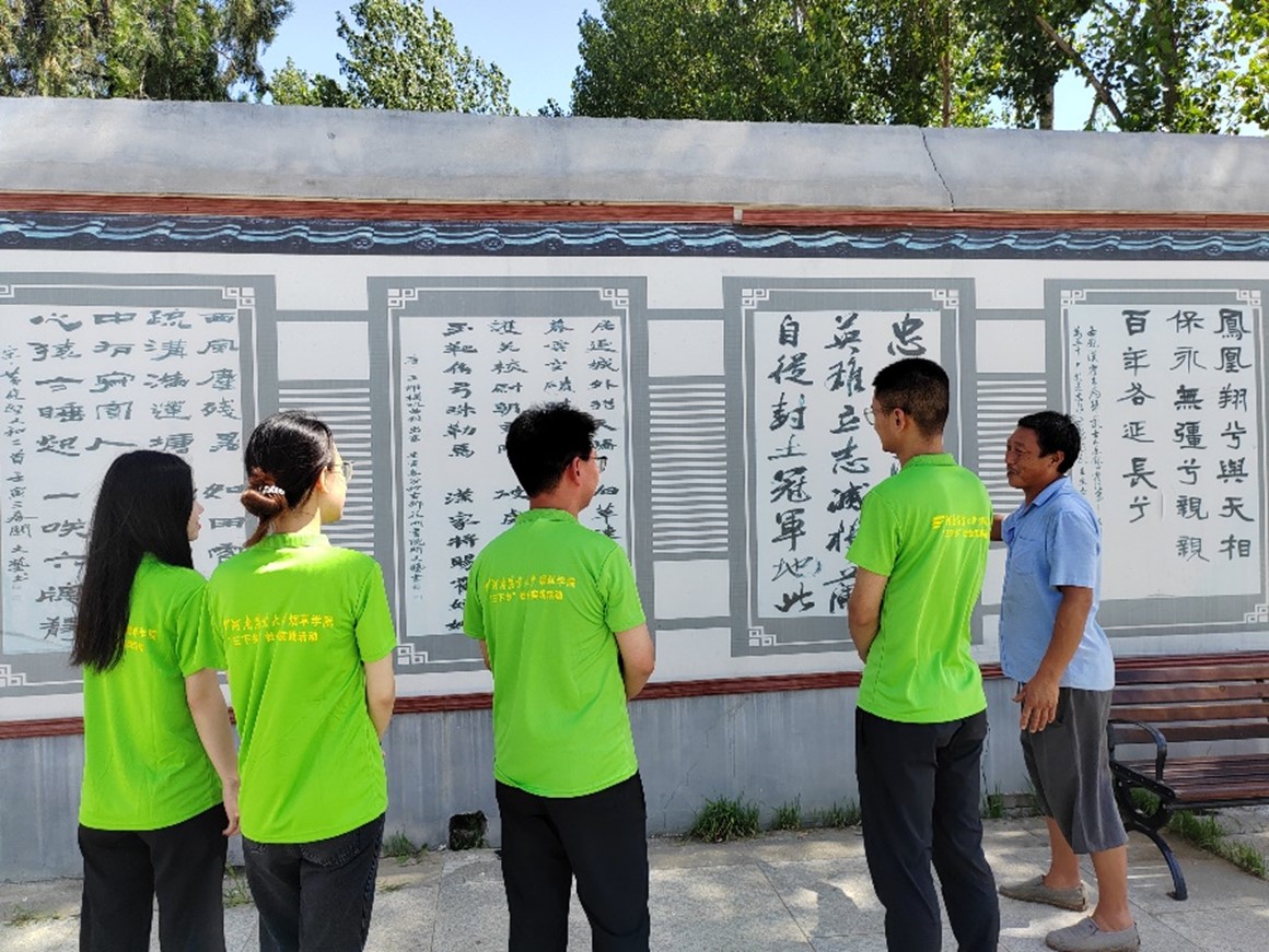 实践期间,实践团成员深入走访了邓州市冠军村。在冠军村村主任李兴辉的带领下,实践团成员参观了霍去病文化园、烟行旧址、李氏祠堂等地,系统了解冠军村的历史由来,近距离体会霍去病“匈奴未灭,无以家为”的家国情怀,探索挖掘民国时期河南烟叶贸易的历史脉络,见证了“邓片烟”的起源、发展与壮大。