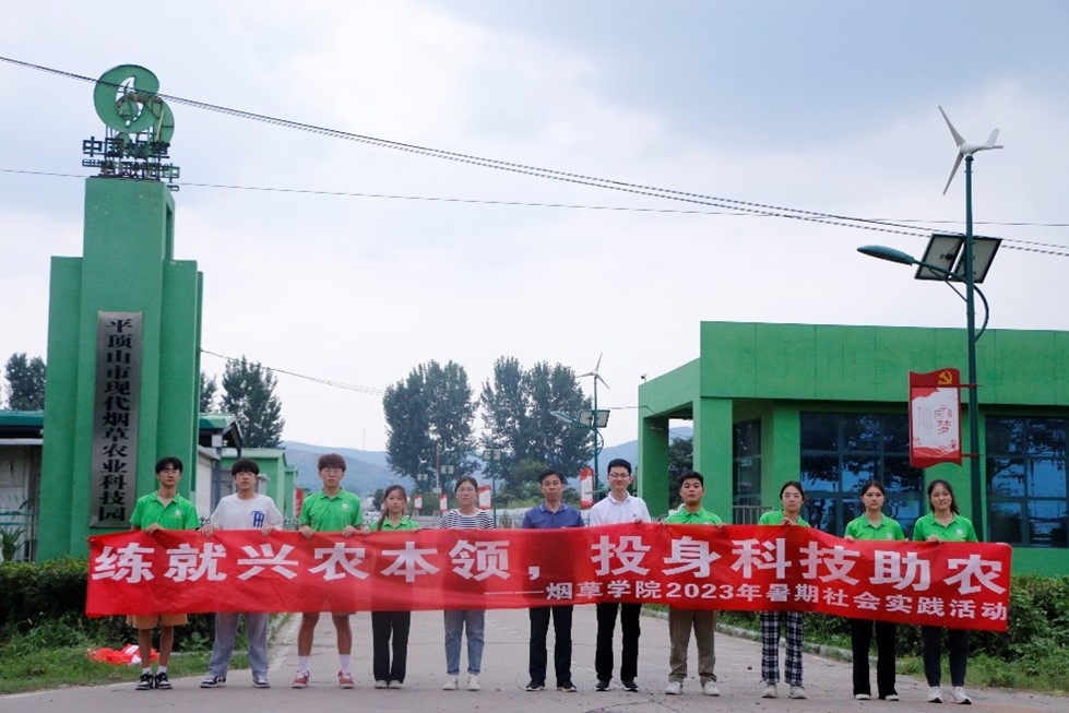 党委副书记史军伟、陈征老师、辅导员胡旦旦带领大学生“青春筑梦,科技助农”志愿服务实践团赴平顶山开展暑期“三下乡”社会实践活动。实践队伍先后来到平顶山烟草文化园、现代烟草农业科技园、烟草博物馆、郏县浓香型烟叶示范田等地。