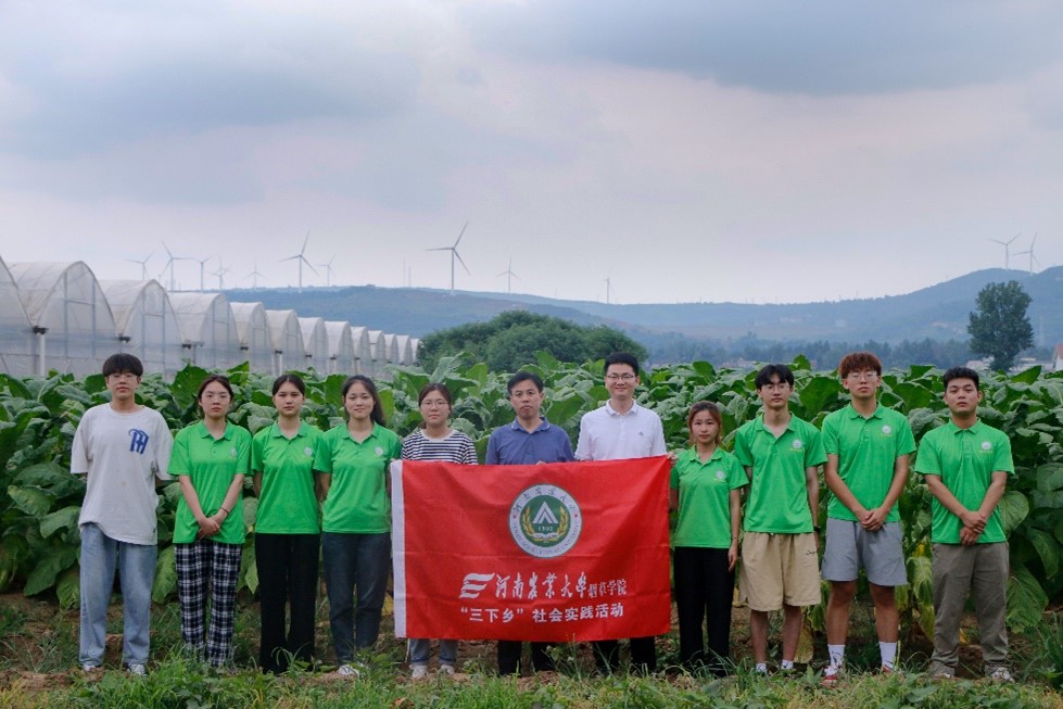 实践团队成员在烟田合影