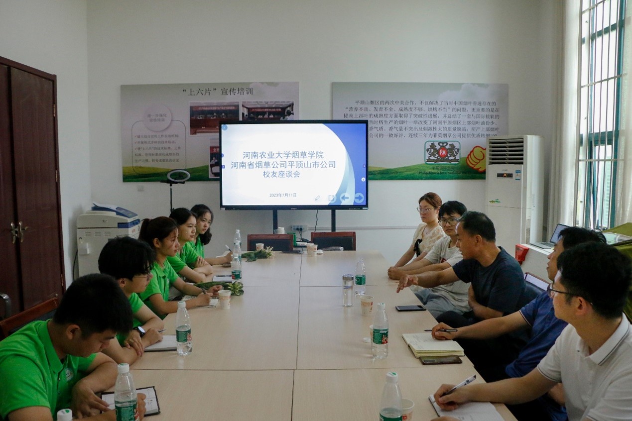 在随后举行的校友座谈会上,91级校友李俊营主任向实践团队介绍了科技园相关情况以及行业最新研究进展,并分享了当前就业形势以及行业人员招聘政策,鼓励实践队员们坚定信心,敢想敢干,用奋斗创造美好的明天。17级校友陈祖销向实践团队成员们分享自身在校求学经历,建议同学们积极利用学院平台优势,学好专业知识,勤于实践,积极参与学院各项活动开展,锻炼个人交际能力,同时尽早做好个人职业规划,积极应对社会竞争。史军伟指出同学们通过此次学习应更加明确学习目标,提高自身素养,早日为烟草行业发展做出贡献。