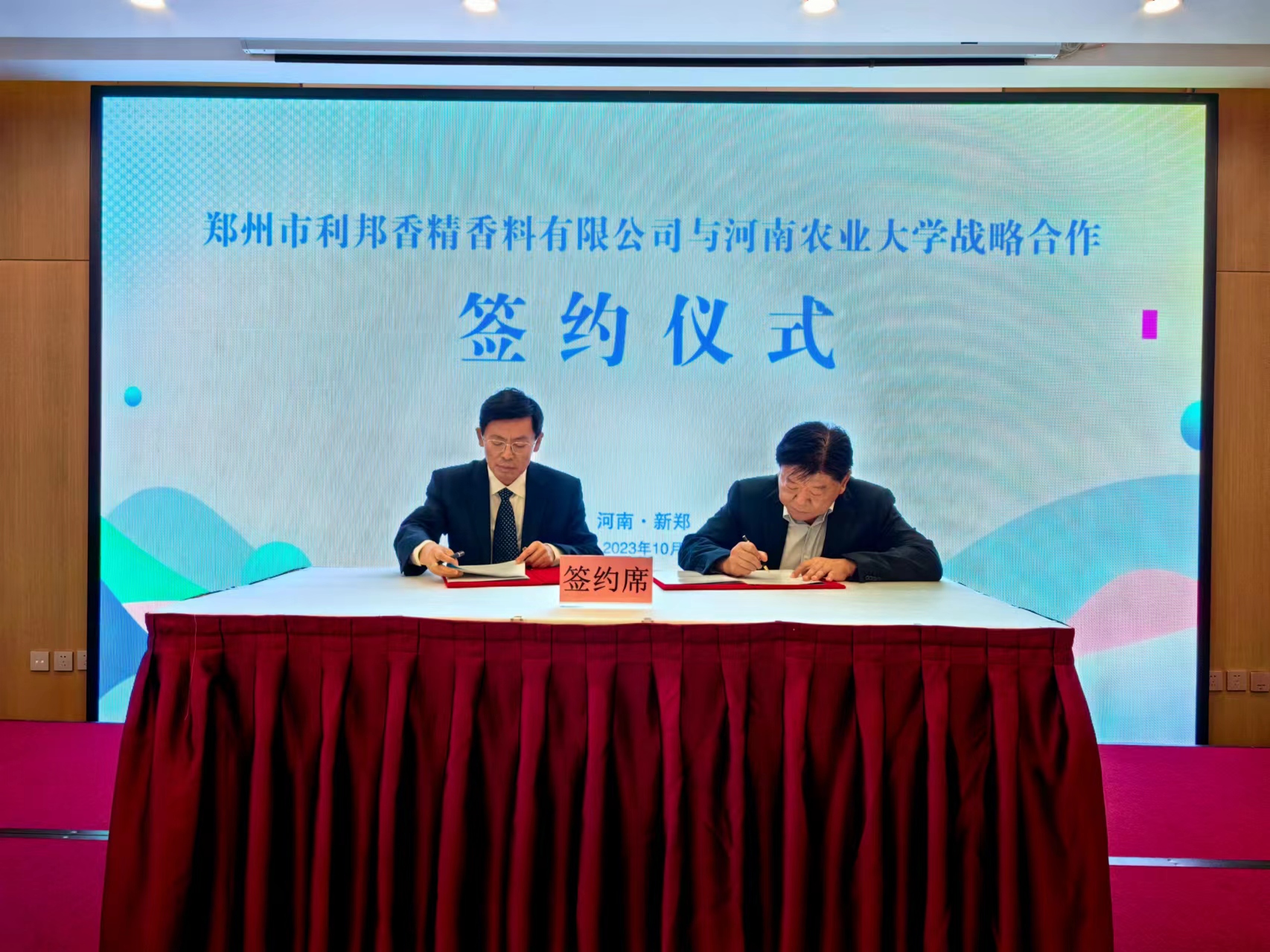 与郑州市利邦香精香料有限公司战略合作签约仪式在新郑市举行。院长赵铭钦、副院长宋朝鹏、新郑市人大常委会副主任张顺安、市人民政府副市长王淑慧、郑州市利邦香精香料有限公司董事长李海彬、总经理杨国选出席仪式,新郑市政府相关负责人、h图书馆