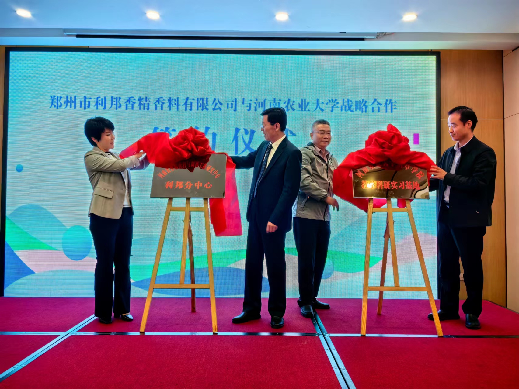 教学科研实验基地”揭牌仪式同时举行。本次战略合作协议的签订,对于深化产学研合作机制,推动烟草行业科技进步,实现香精香料产业提档升级具有重要意义。(文/肖梦兰 图/武志勇 签审/赵铭钦)