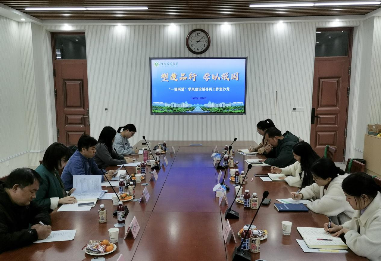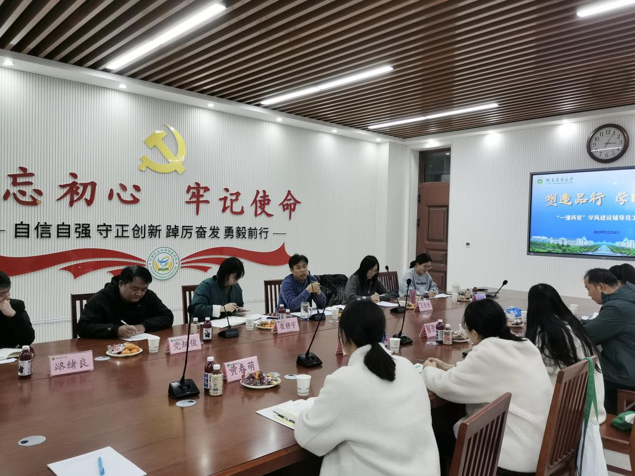 会上,史军伟介绍了“一懂两爱”学风建设辅导员工作室的基本情况,围绕培养一懂两爱农科人才、思政教育、学术实践等方面取得的工作成效做主要汇报。接下来各学院分别从学风建设的特色做法进行分享交流。h图书馆 崔静宇从健全规章制度、紧密贴合专业、创新学风活动形式、发挥榜样引领等四个方面介绍了学风建设的特色案例。资源与环境学院黄春萌从抓思想、抓管理、抓干部、抓实效四个方面分享了本学院学风建设的成效。园艺学院乔芳芳按照不同年级学生特点,针对性地介绍了开展入学教育、成长成才教育、职业生涯规划、就业激励政策等方面分享了学风建设特色做法。