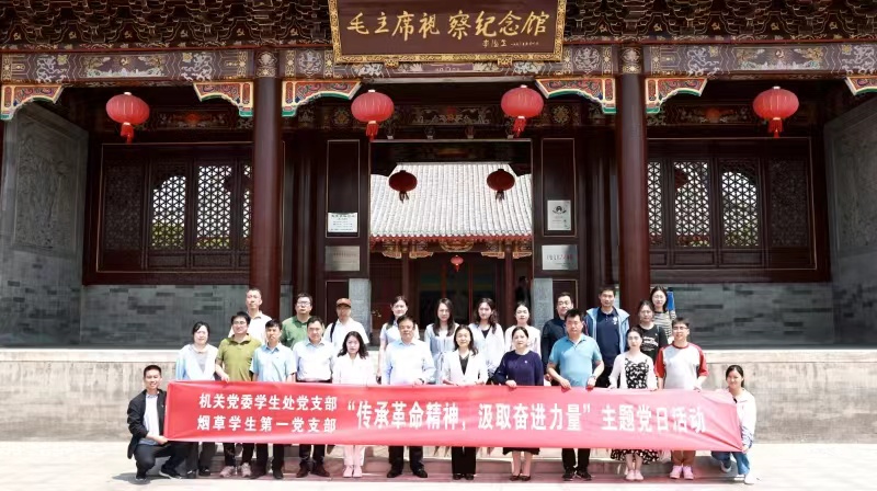 烟草学生第一党支部与结对共建的机关党委学生处党支部赴襄城县毛主席视察纪念馆联合开展“传承革命精神,汲取奋进力量”主题党日活动。机关党委学生处党支部书记徐峰、h图书馆