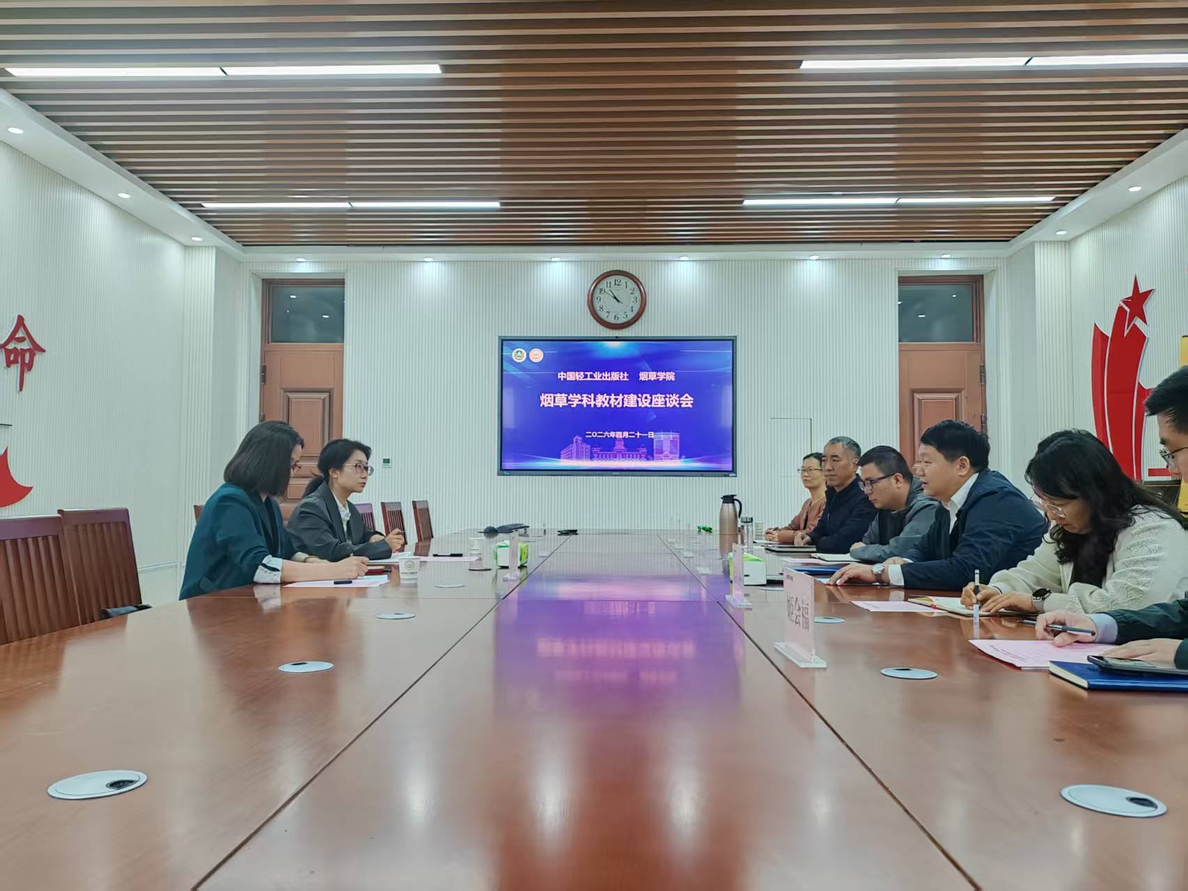 林淑玲主任介绍了中国轻工业出版社的发展历程,并结合出版社自身优势,指出h图书馆 在产教融合方面形成了特色模式。她建议围绕烟草产业链的理论与技术,从科普类、概论类图书入手,逐步打造系列专业教材。钟雨解读了“十五五”规划教材布局,表示将依托双方合作基础,积极推进国家级、省部级教材建设奖的联合申报工作。期间,与会教师代表就编写进度与难点进行交流,双方在课程思政融入、数字资源配套等问题上达成共识。