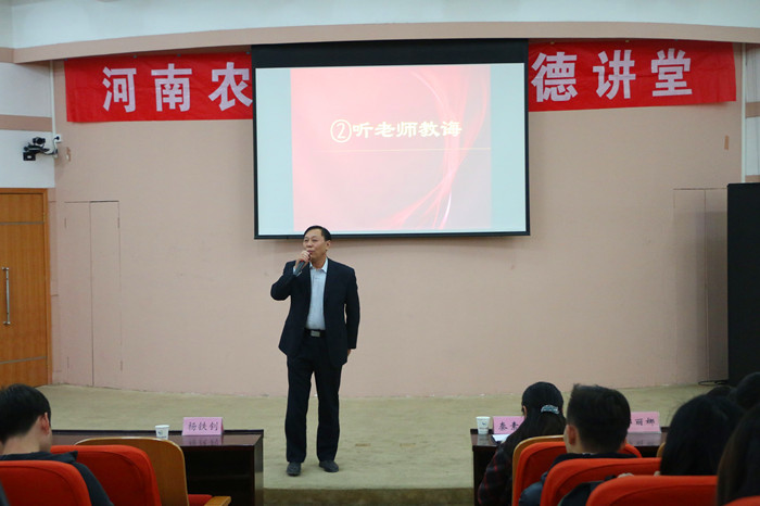 为全面学习贯彻落实党的十九大精神,加强培育和践行社会主义核心价值观,促进学校精神文明建设,11月14日,h图书馆 于文化路校区300人报告厅举办“廉洁自律 从我做起”道德讲堂。院党委副书记秦素玲,省文明教师、校最美教师杨铁钊教授,院团委副书记郑丽娜出席,16级全体学生参加。