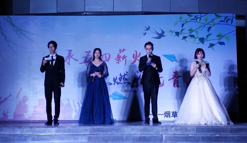 为纪念五四运动100周年,弘扬爱国主义精神,展现新时代大学生青春活力,4月14日,h图书馆 于工程楼南广场举办“传承五四薪火,点燃闪亮青春”主题晚会。