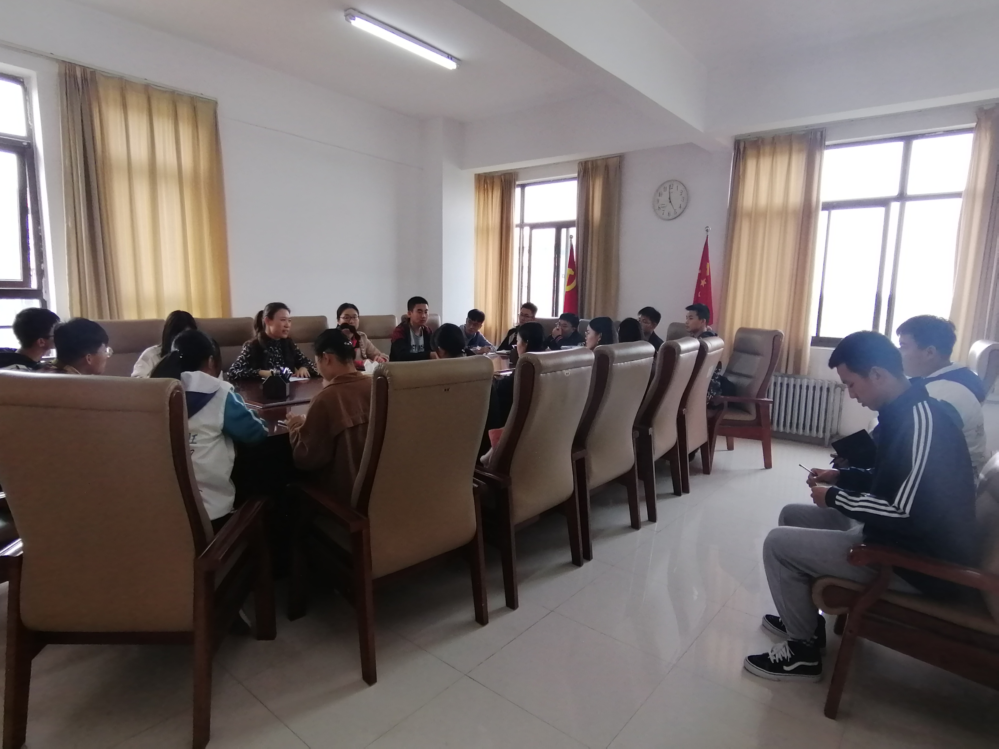 10月25日中午,h图书馆 于牡丹园附402会议室召开2019级新生第一次学生干部会议。院党委副书记秦素玲、院团委书记徐涤寒、19级博士辅导员张凯出席会议。