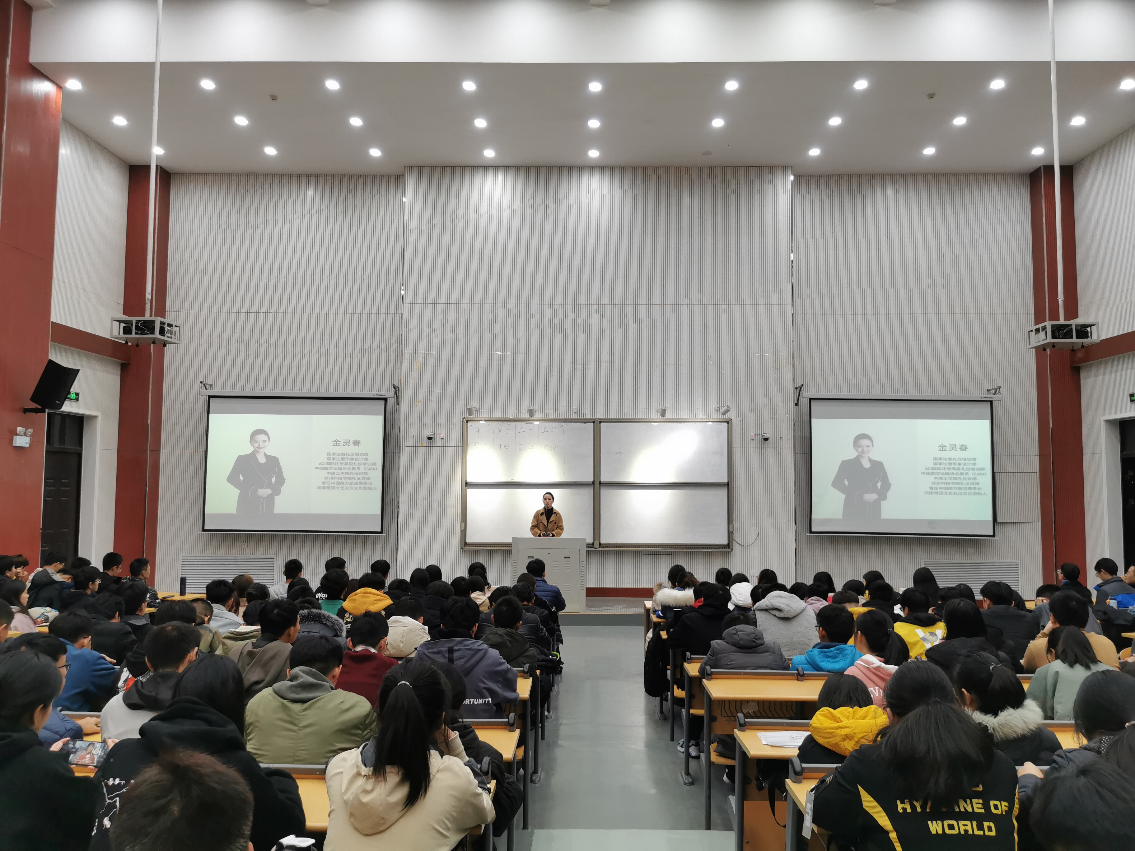 为提升学生文明素养,提高文明礼仪水平,12月5日晚,h图书馆 于繁塔楼大教室5举办礼仪知识讲座。此次讲座特邀国家注册特训礼仪培训师、AIC国际注册高级礼仪培训师金灵春主讲,19级全体学生参加。