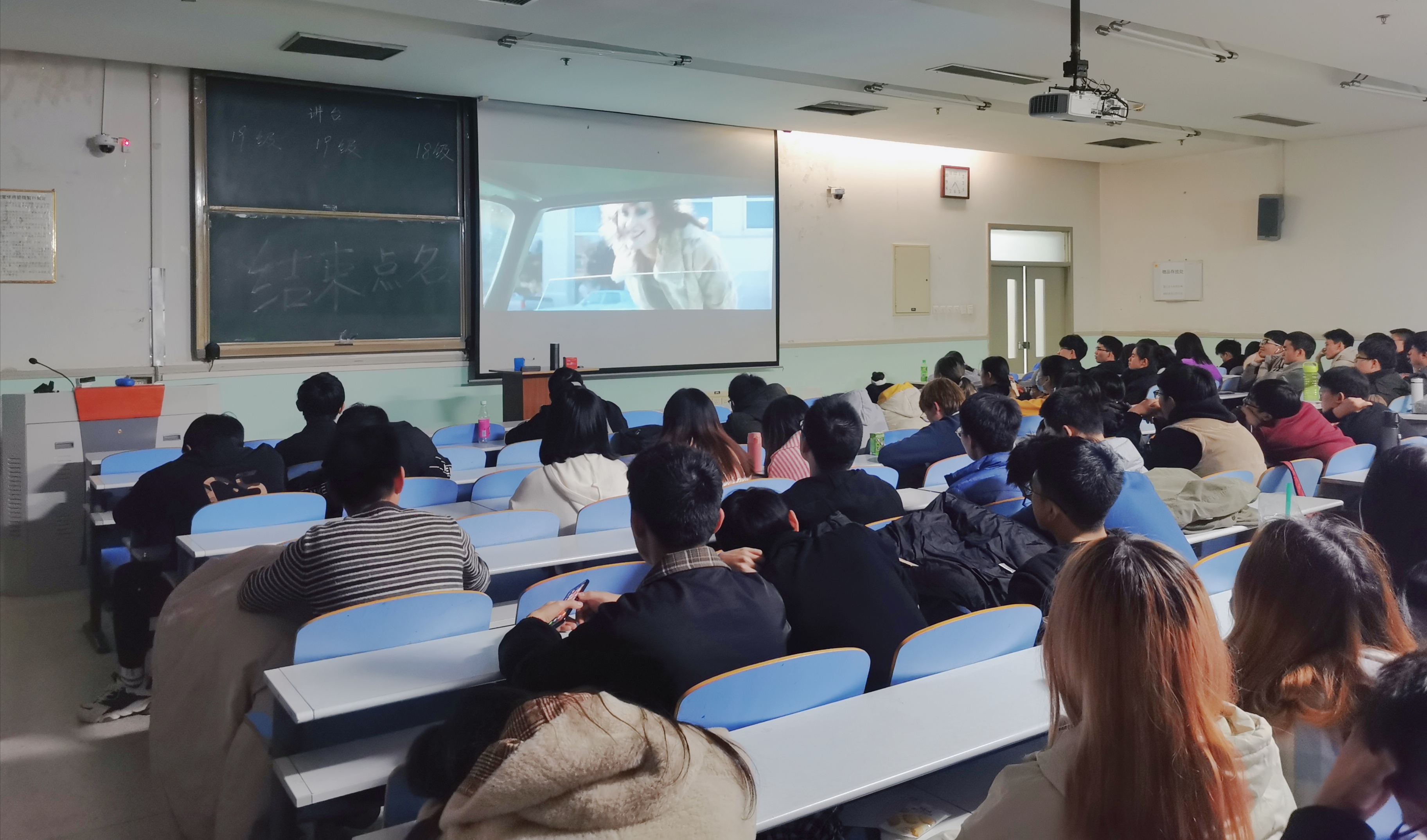 于工程楼302教室组织学生观看艾滋病防治主题电影《达拉斯买家俱乐部》。