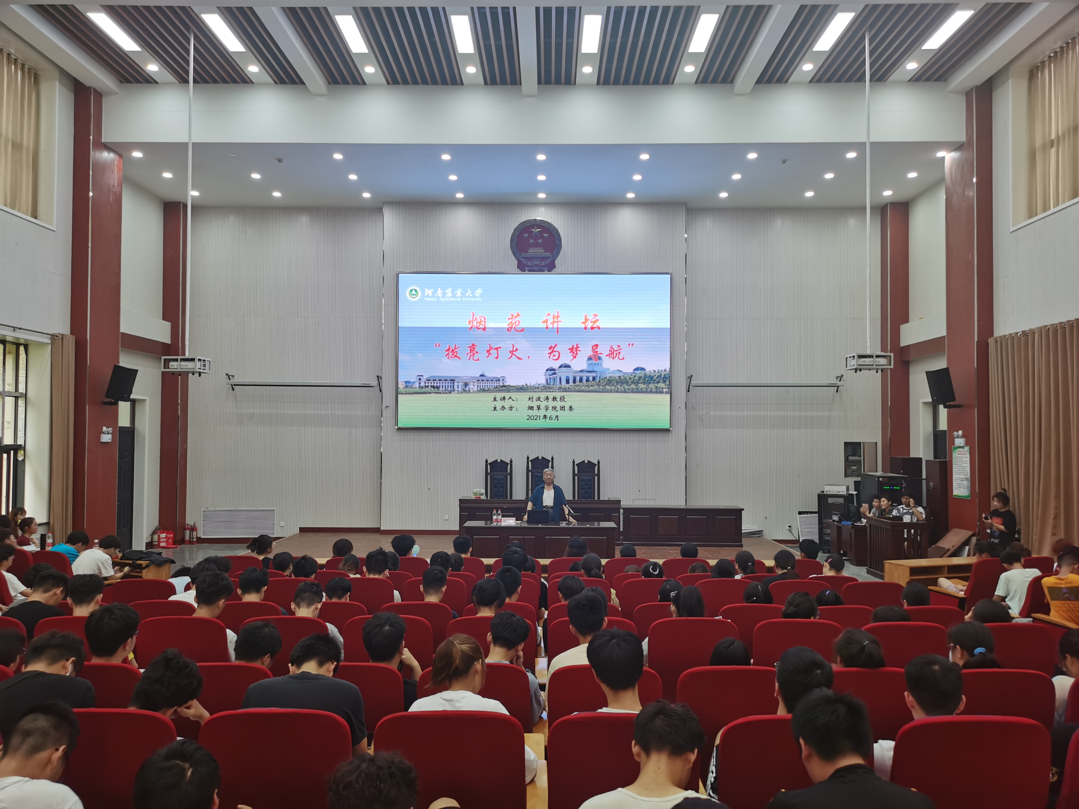于龙子湖校区繁塔楼模拟法庭教室举办“拨亮灯火 为梦导航”金色烟园教授报告会。20级辅导员田馥梦主持,河南省青少年德育优秀宣讲专家刘波涛教授主讲,20级全体学生参加。