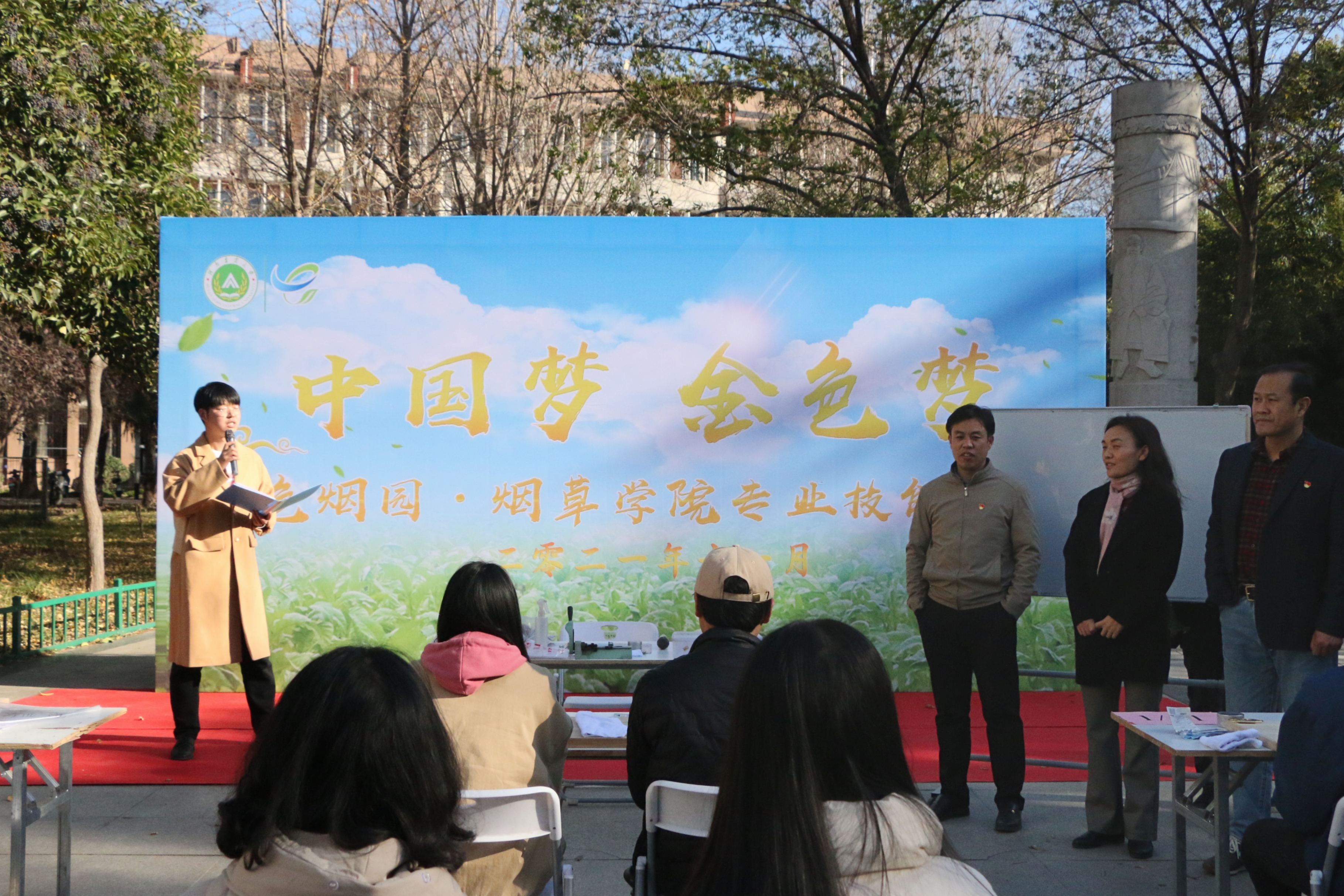 举办了以“中国梦•金色梦”为主题的烟草专业技能大赛,活动在文化路校区牧医广场进行。院党委书记张利冰、院党委副书记史军伟、副院长时向东及研究生辅导员张凯出席活动,学院研究生、本科生以及外院学生100余人参加活动,时向东教授担任总评委。