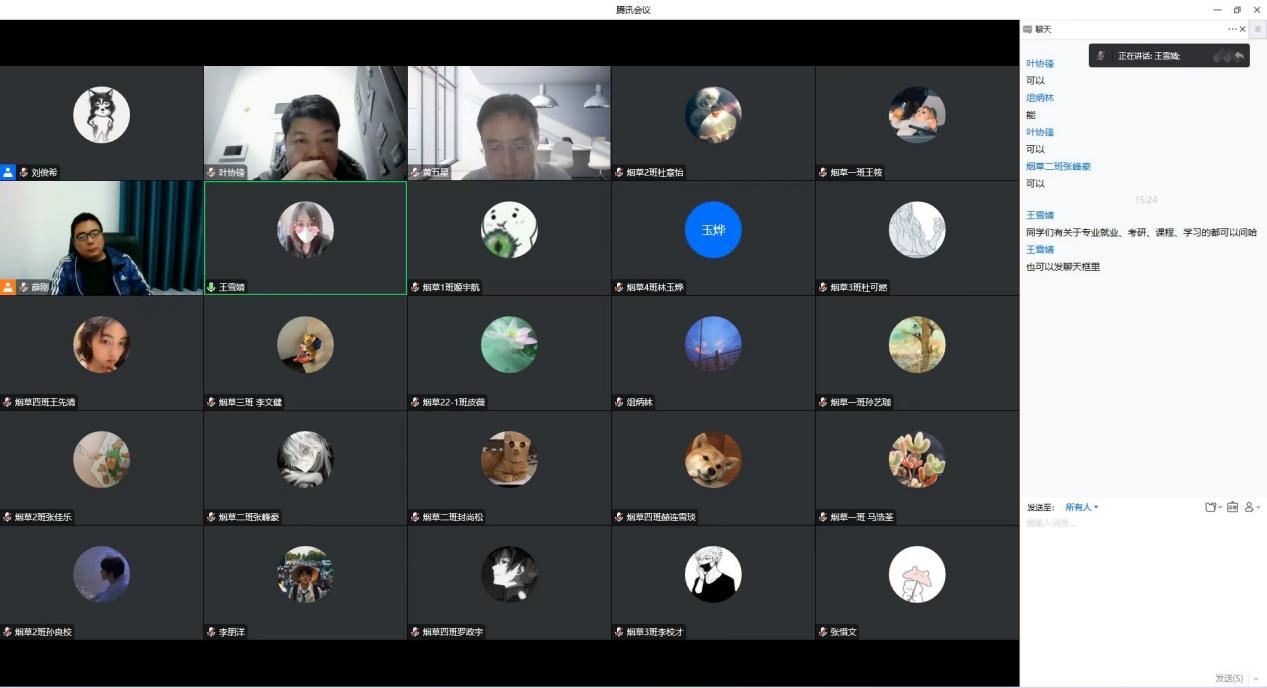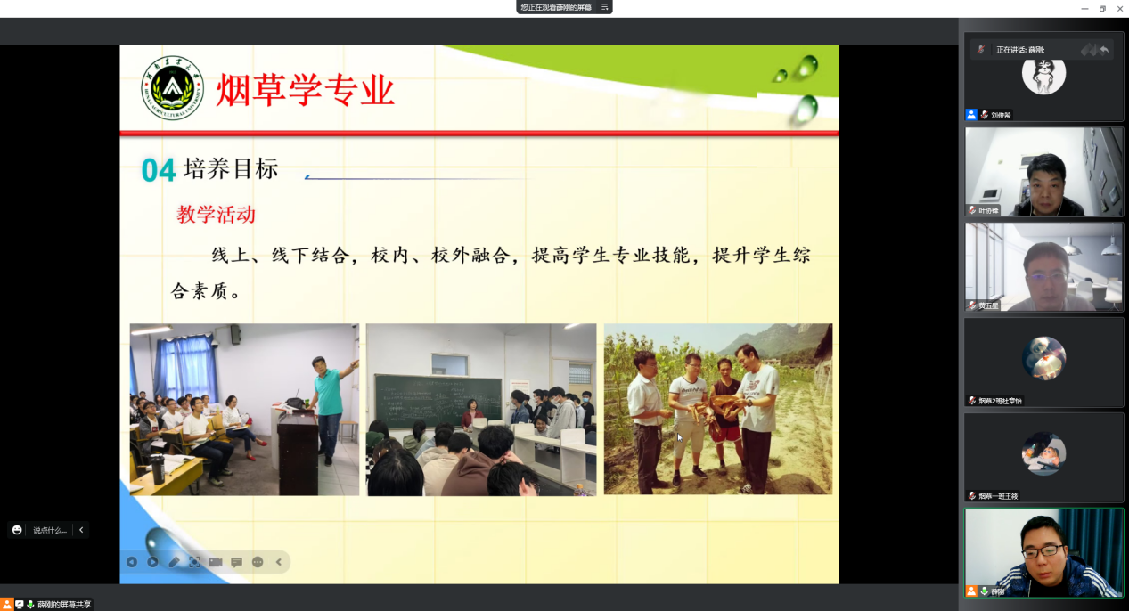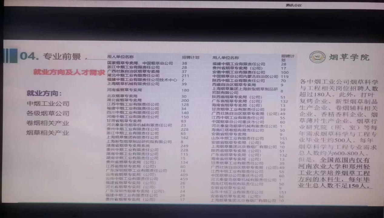 本次会议由烟草科学系三名老师和烟草工程系两名老师针对2022级烟草、烟草工程和香料香精技术与工程专业分别展开介绍。薛刚和付博分别对烟草学和烟草工程学专业的发展历程、专业建设、培养目标与专业前景进行系统的介绍。黄五星介绍了烟草专业历届毕业生考研与就业去向。武志勇就香料香精技术与工程专业的基本情况、专业基础条件、学院学科定位等进行了详细的讲解。叶协锋从树立专业自信、营造专业学习的紧迫感与烟草专业未来发展三个方面进行总结,鼓励学生要怀抱梦想,奋勇拼搏。最后,王雪婧介绍了《h图书馆 2022年推免生遴选方案》,鼓励同学们把推荐免试攻读硕士研究生作为自己的学习目标。
