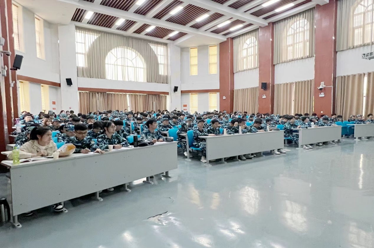 史军伟介绍了党的二十大报告的主要内容、成果以及我国面对的重大风险与挑战。结合习近平总书记在党的二十大报告中对青年提出争做有理想、敢担当、能吃苦、肯奋斗的新时代好青年的要求,史军伟强调,全体学生要积极学习领会党的二十大精神,以实现中华民族伟大复兴为己任,筑牢国防意识,增强强军观念,踔厉奋发、勇毅前行,用奋斗绘就青春最亮丽的底色。