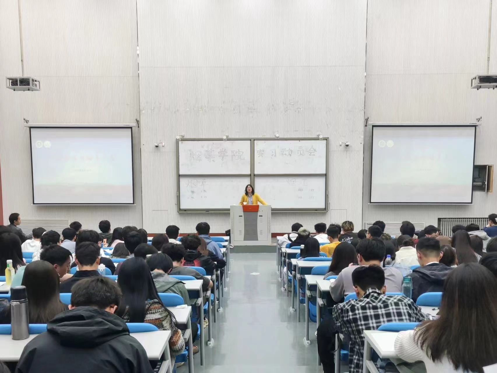 黄五星从实习的目的、要求,内容和注意事项四个方面展开了详细叙述,对烟草专业毕业实习进行了系统安排,强调了实习期间应该注意的若干问题。田斌强就烟工专业学生的毕业实习提出三点希望:一是希望同学们重视实习,珍惜机会,以实习为重,多手准备;二是希望同学们主动对接烟草行业需求,结合所学专业知识,全面提高综合分析问题能力、锻炼独立工作能力,在实习中摆对位置,放平姿态,脚踏实地;三是希望同学们实习过程中保证安全,遵守纪律。王雪婧用几个事例就实习期间加强自我管理和自我约束做出具体要求,强调全体学生要提高人身安全、财务安全和遵纪守法意识,注意防诈骗、防传销,强调了学生自己永远是自己安全的第一责任人。最后,宋朝鹏着重强调了本次实习的重要性,明确指出,本科生产与毕业实习是全面完成专业教学计划的需要,对扎实掌握专业知识、全面提高综合分析问题能力、锻炼独立工作能力具有十分重要的意义。他希望全体学生深入生产一线,努力学习,敢于吃苦,要发扬“明德自强、求是力行”的校训精神,遵从“厚德博学求是笃行”的院训要求,做到理论与实践相结合,切实提高自身专业技能水平。