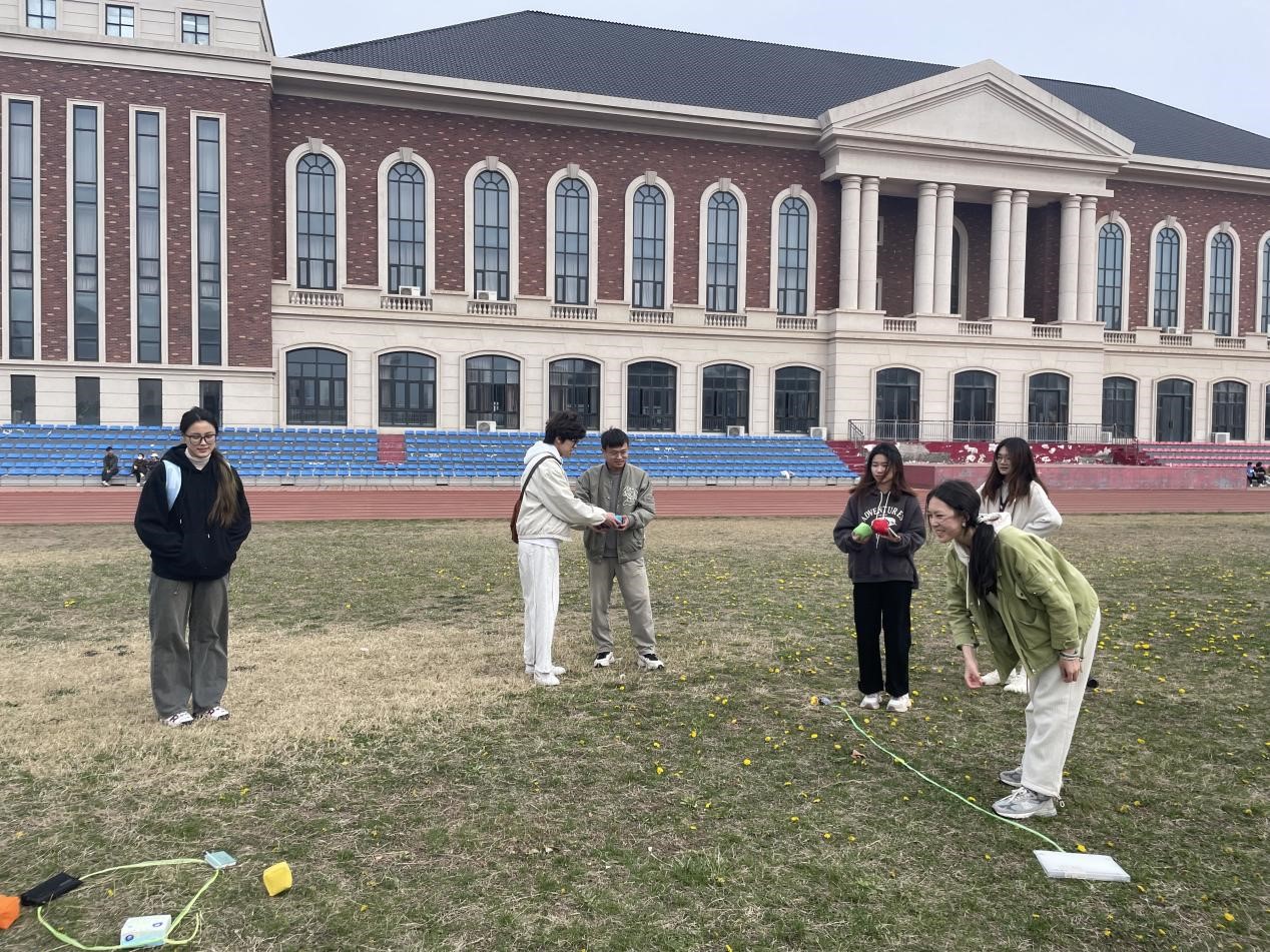 最后,我们进行了投掷沙包的比赛,将沙包投入规定圈内将为队伍积分,各小组成员相互鼓励,积极分享经验.