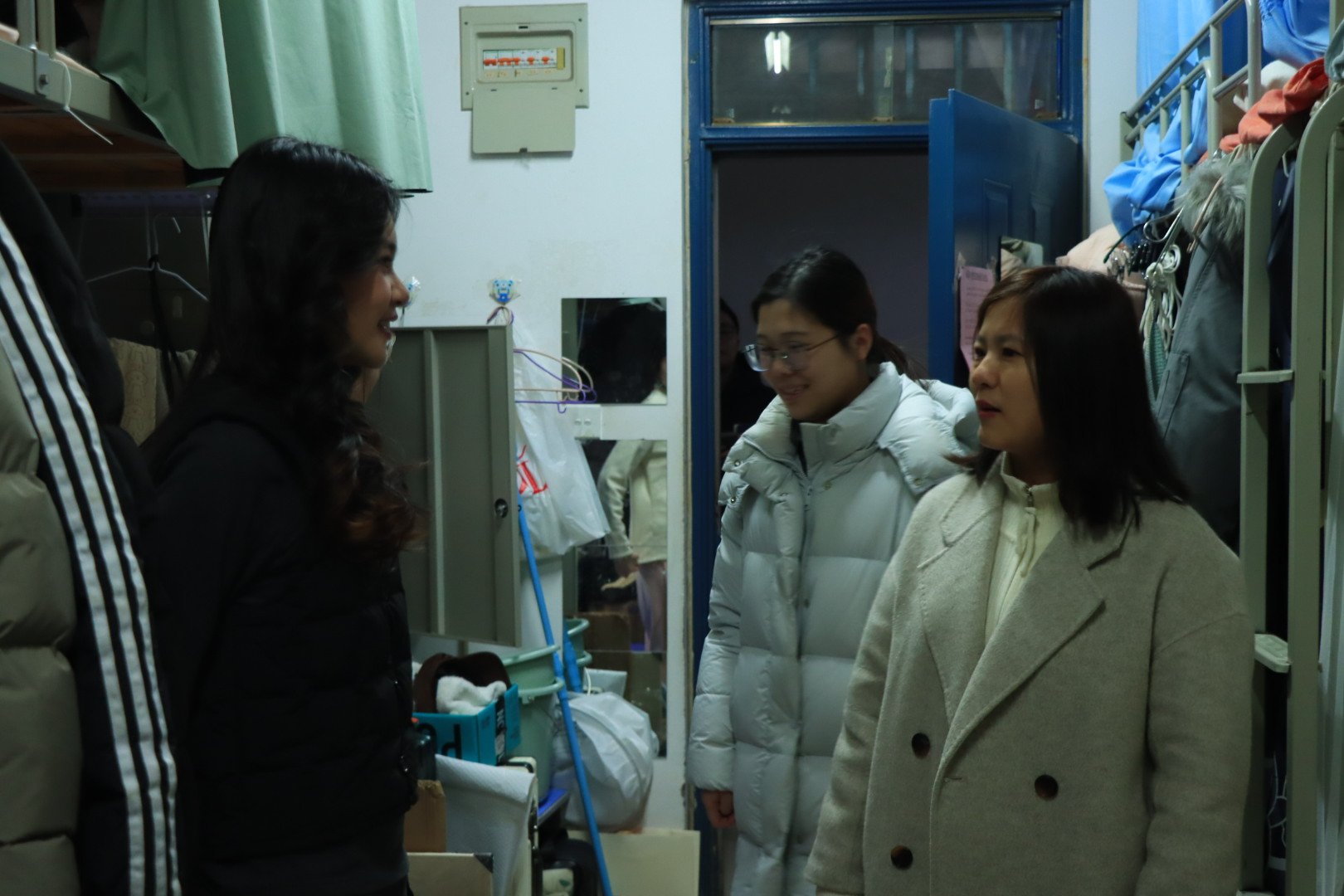 为深入贯彻学校关于校园安全稳定工作的部署要求,营造安全、文明、和谐的校园生活环境,同时扎实做好学生关心关怀工作,1月11日晚,学院领导班子成员带队,各系主任、全体辅导员共同参与,深入桃李园、龙子湖校区学生宿舍,开展期末生活慰问与冬季安全隐患排查专项工作。